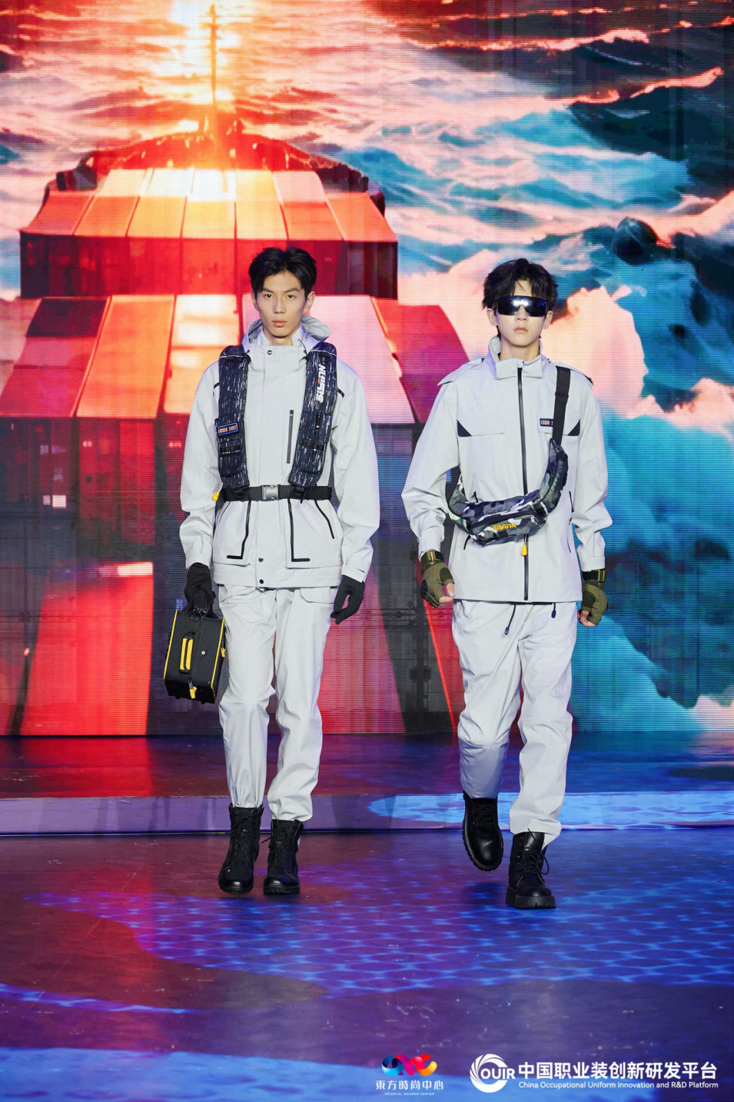 活动现场,由际华3506公司制作的一系列海上功能服成为焦点。该系列服装将科技功能与时尚设计完美融合,充分考虑海洋作业场景的特殊性,将智能可穿戴与服装完美结合。