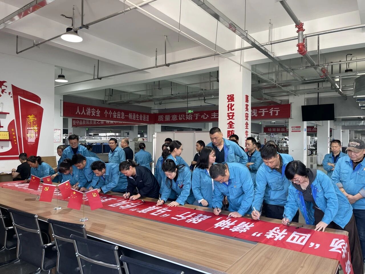 随后,公司综合生产部部长蔡冬、生产分厂厂长姚立及员工代表李夕熲依次作表态发言,充分表达了坚决完成限期任务的决心和信心。责任压实环节,各部门负责人依次上台,郑重签订《消防任务生产军令状》,进一步拧紧责任链条,为百日攻坚划定 “硬指标”、立下 “军令状”,确保任务层层传递、压力环环相扣。大会最后,一场 “签名明志” 活动将氛围推向高潮。全体参会人员有序上前,郑重签下自己的名字,一笔一划不仅是对百日攻坚的承诺,更是对高质量完成消防专项生产任务的坚定决心。大家眼神坚定、神情激昂,纷纷表示将以 “时不我待、只争朝夕” 的紧迫感,把签名化作行动,用实干赢得胜利。