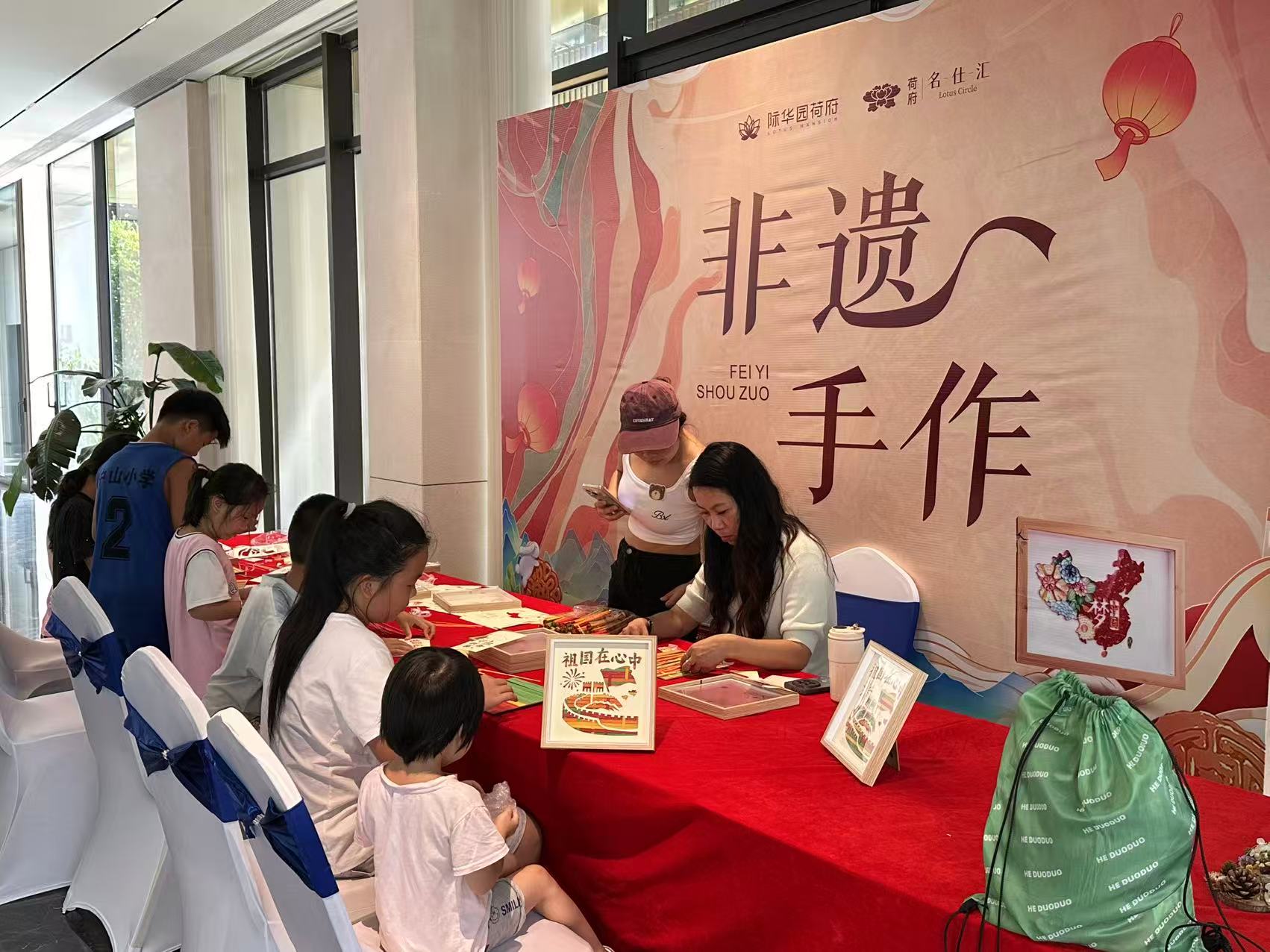 际华园荷府组织开展国庆中秋造趣生活节,非遗衍纸、非遗金铂画手作DIY、趣味游园等精彩活动轮番上演,现场欢声笑语、氛围热烈,到访客户在诗情画意的合院内,充分感受中华传统文化的魅力。