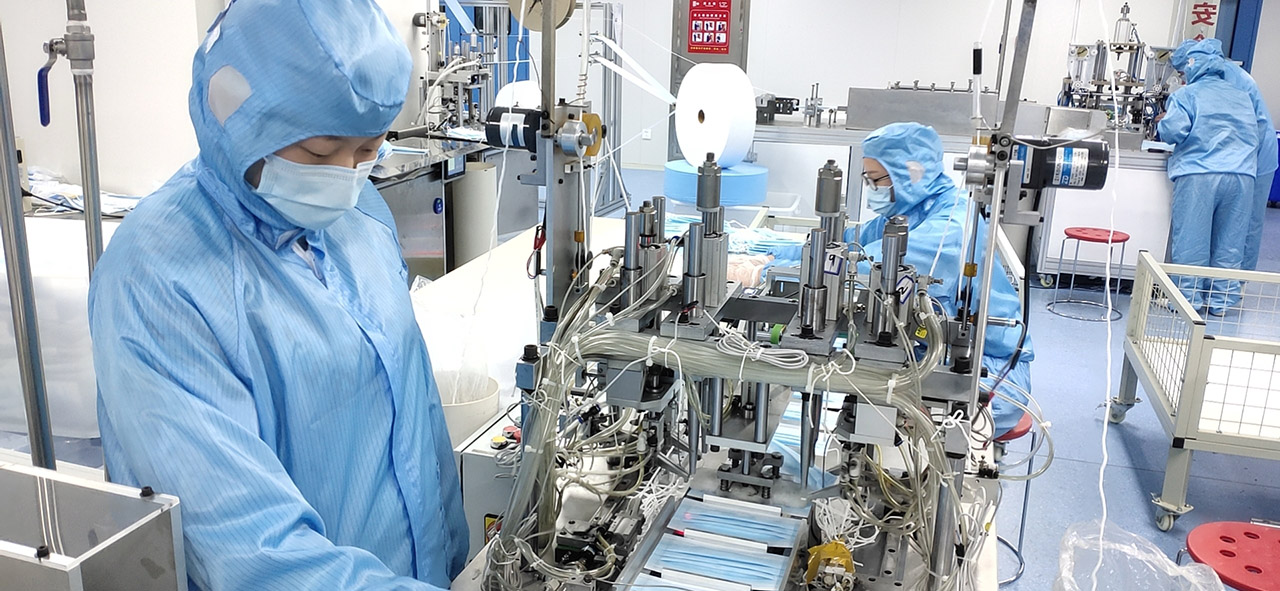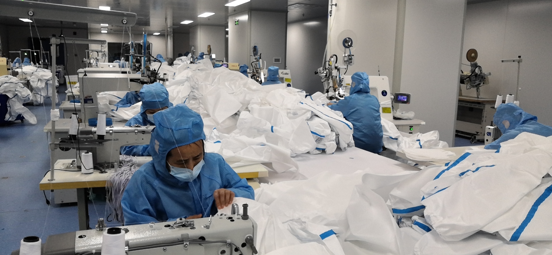 1月12日,根据地方政府相关防疫要求,公司党委为了保障防疫物资正常生产,再次果断决定,每天早上7:00上班,晚上8:00下班,中间不允许员工随便出入公司大门,避免与社会其他人员接触、避免交叉感染。在公司党委的决策部署下,公司继2020年初医用防护服大会战后再次开启了防护物资生产的大会战,每天工作时间达13个小时。